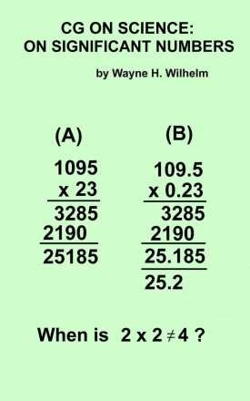 (link to eBook pamphlet on Amazon) 14 pages #4 CG on Science: On Significant Numbers The CG on Science chapter on Significant Numbers involves an exploration of how rounding of numbers after using division and multiplication where decimal positions are involved can affect accuracy. When multiplying, having decimal positions in the numbers can alter the result. The number of decimal positions in the product will be the sum of decimal positions in the multipliers. When multiplying a number having three decimal positions and another number only having one decimal positions, the product can only have one decimal position.. Rounding the answer could leave us with an answer of 25.2 instead of 25.185. When we do that, what happens to the discarded 0.015 that was rounded off? |